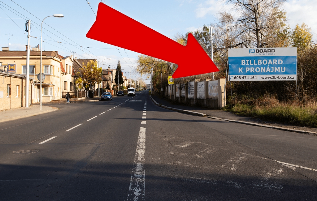 Euroboard samostatně stojící, kolmý na směr jízdy. Příjezd na sídliště Šanov II od centra, kruhového objezdu v Trnovanech.