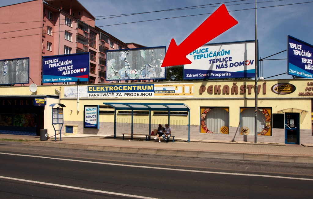 Euroboard v ulici Duchcovská, přímo naproti vchodu do Okresní nemocnice s poliklinikou Teplice. V blízkosti MHD zastávky