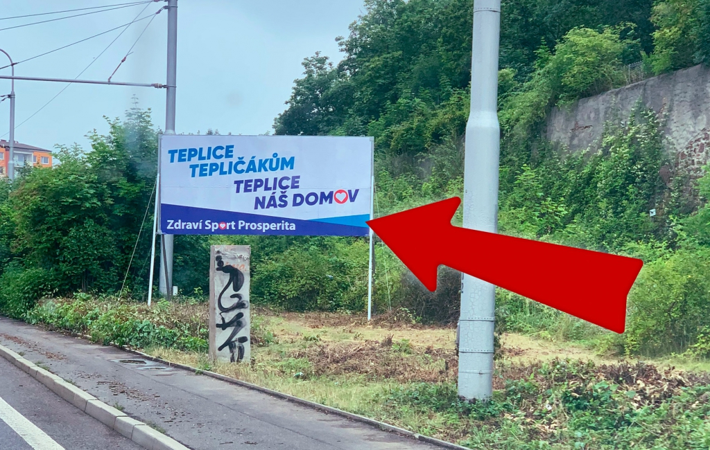 Billboard v Proseticích směr centrum. Frekventovaný provoz ve směru od Bystřan a okolních vesnic (Rtyně, Velvěty, Úpořiny,..).